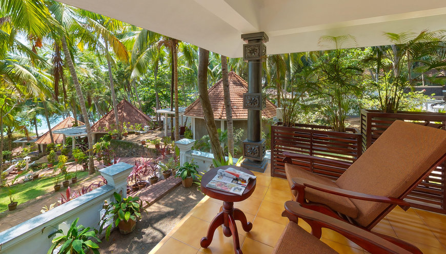 Насладитесь отдыхом в уединенном отдельно стоящем коттедже или номере с видом на сад или океан! Просторный керальский коттедж (номер) окружен зеленым садом, а с террасы виден океан. В его интерьере сочетаются традиционные и современные элементы оформления, что позволяет создать уют и комфорт. Коттедж (номер) обставлен керальской мебелью из великолепного темного дерева. Вся обстановка выполнена из натуральных материалов, что располагает к отдыху наедине с самим собой и природой. В коттедже также есть закрытая ванная комната с душем.