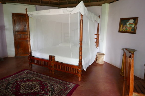 В традиционной керальской хижине есть все необходимое для комфортного отдыха, а именно большая кровать с антимоскитным балдахином, шкаф, письменный стол и туалетная комната под открытым небом. Аутентичная хижина не предполагает наличия кондиционера, холодильника и телевизора.